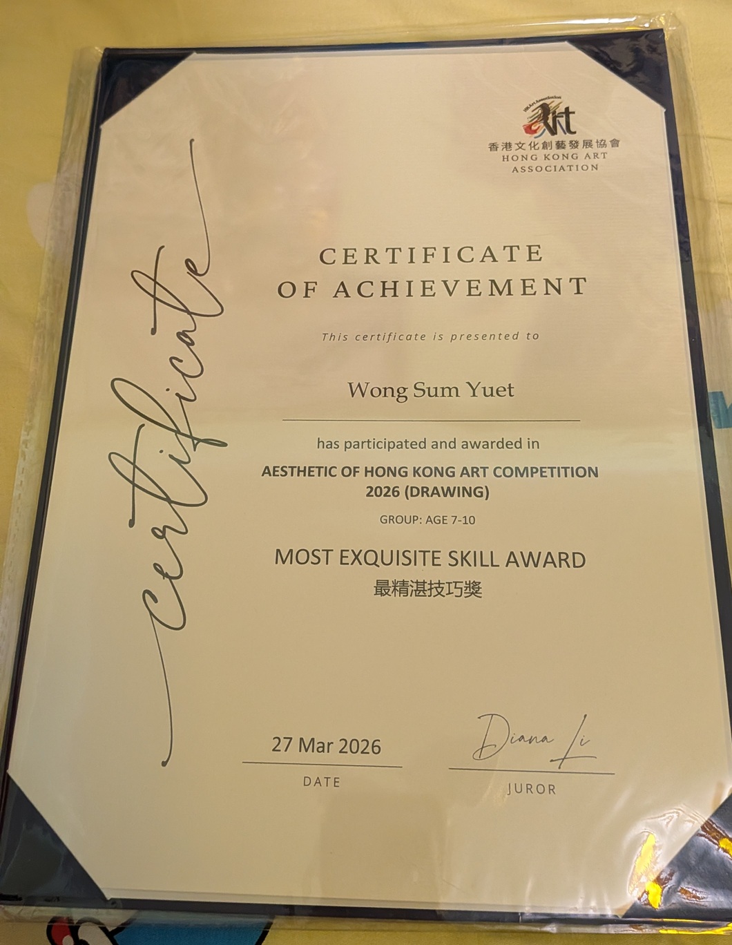 5A_黃芯玥_2026「美· 香港」繪畫比賽_兒童組(7-10 歲)_最精湛技巧獎
