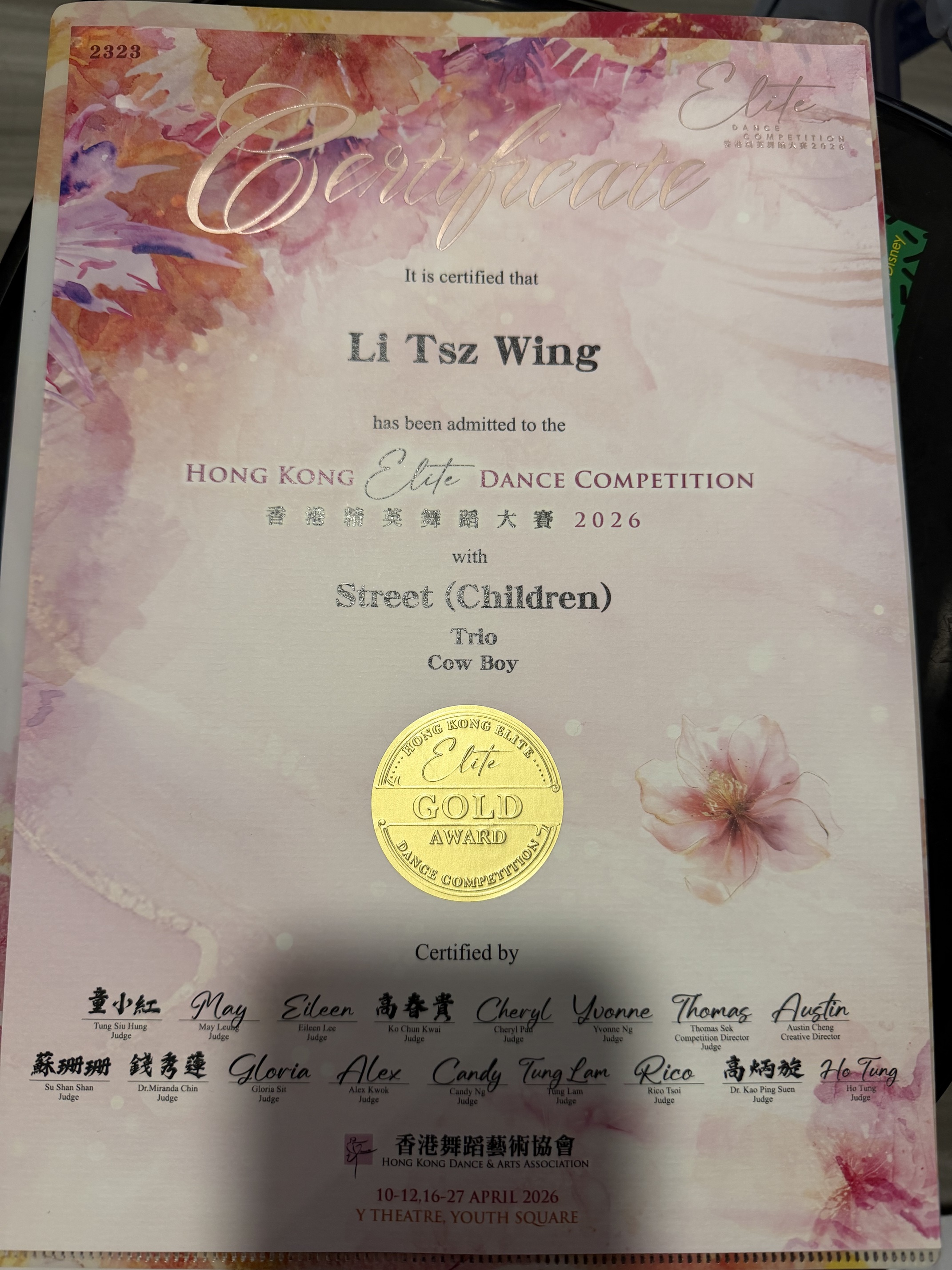 1B_李梓嶸_香港精英舞蹈大賽2026_街舞-兒童組(6-8歲)_金獎