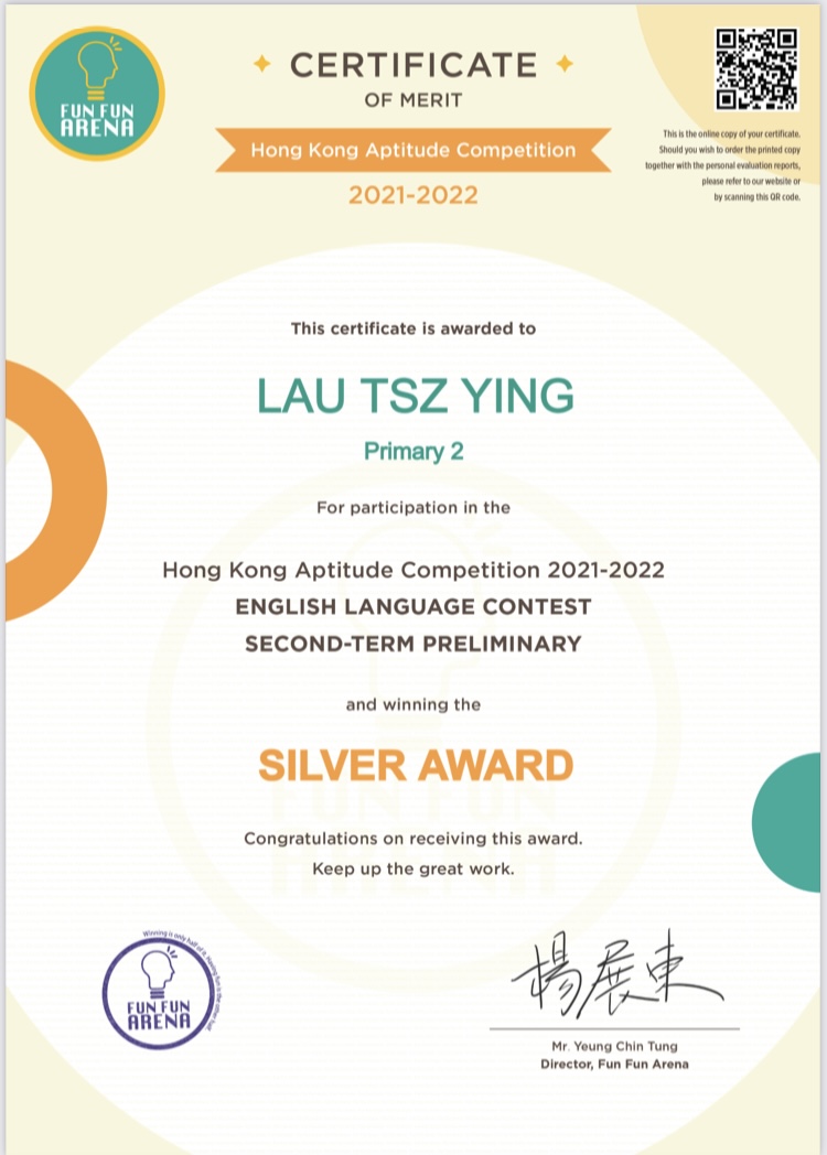 2B_劉紫瑩_2021-2022 香港學科比賽(下學期初賽)英文科_小學二年級_銀獎