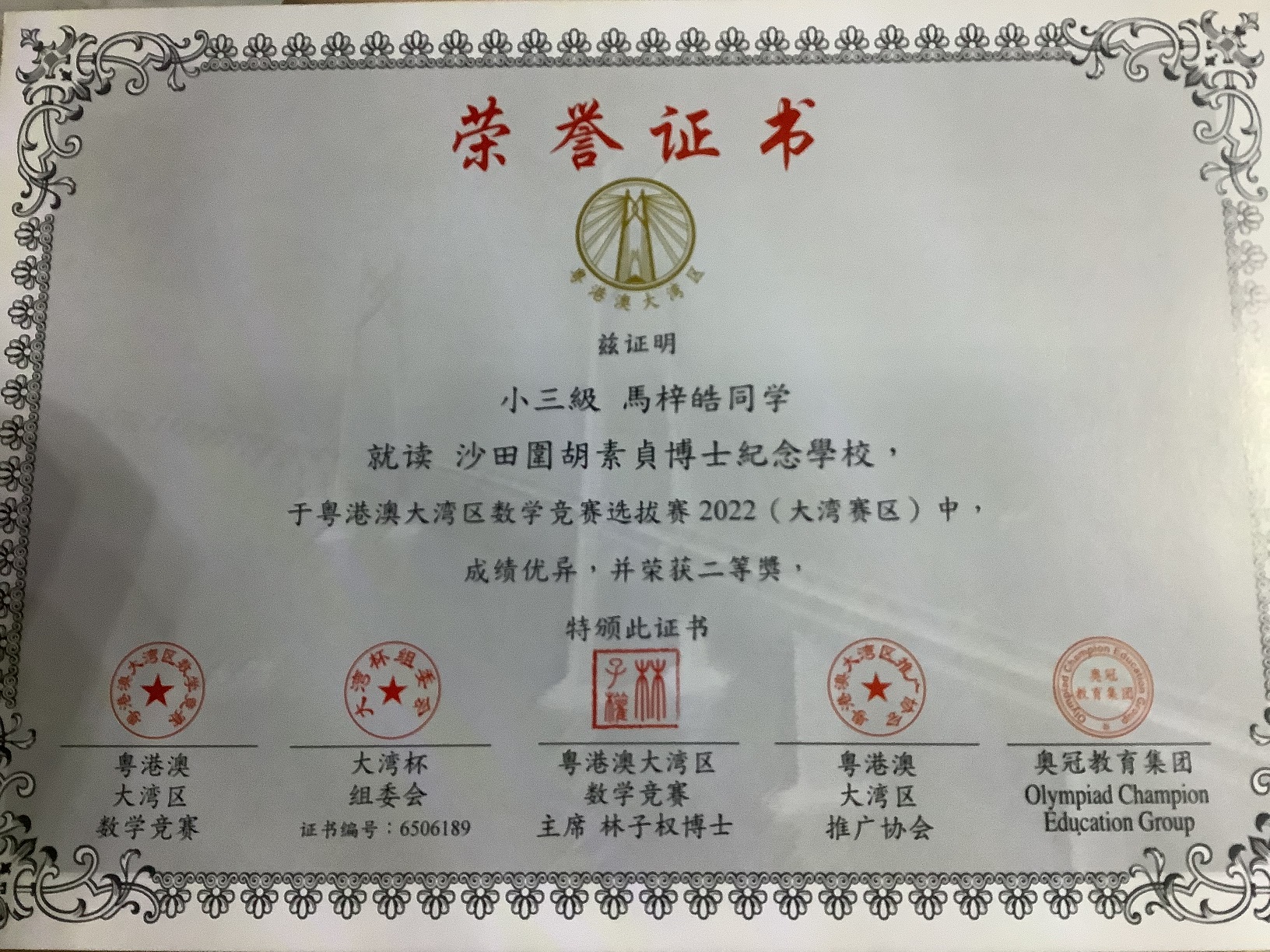 3A_馬梓皓_粵港澳大灣區數學競賽選拔賽2022(大灣賽區)_小三級 _二等獎
