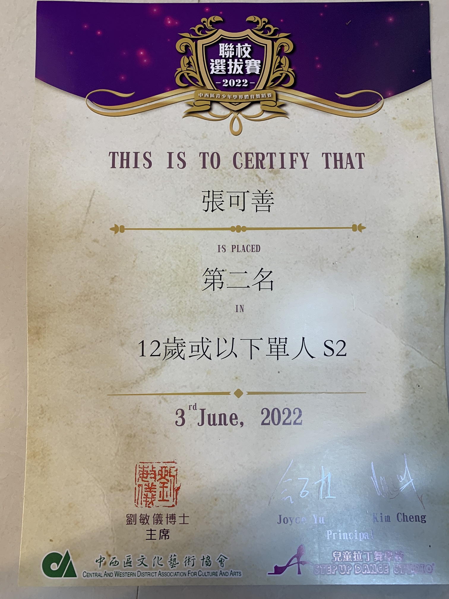 4D_張可善_聯校選拔賽拉丁舞比賽森巴舞_12歲以下組別_亞軍