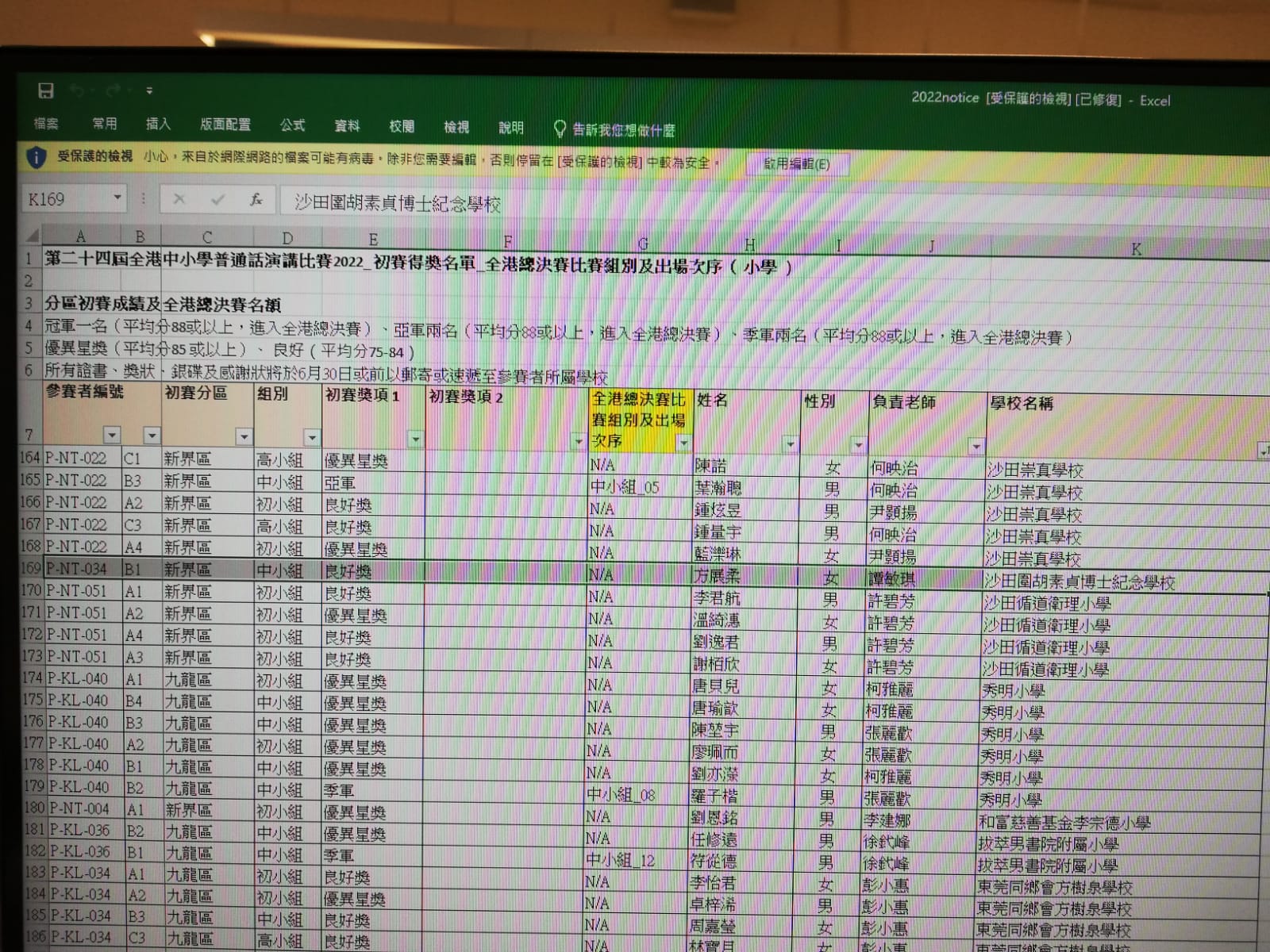 新界區中小組 | 良好獎 | ||