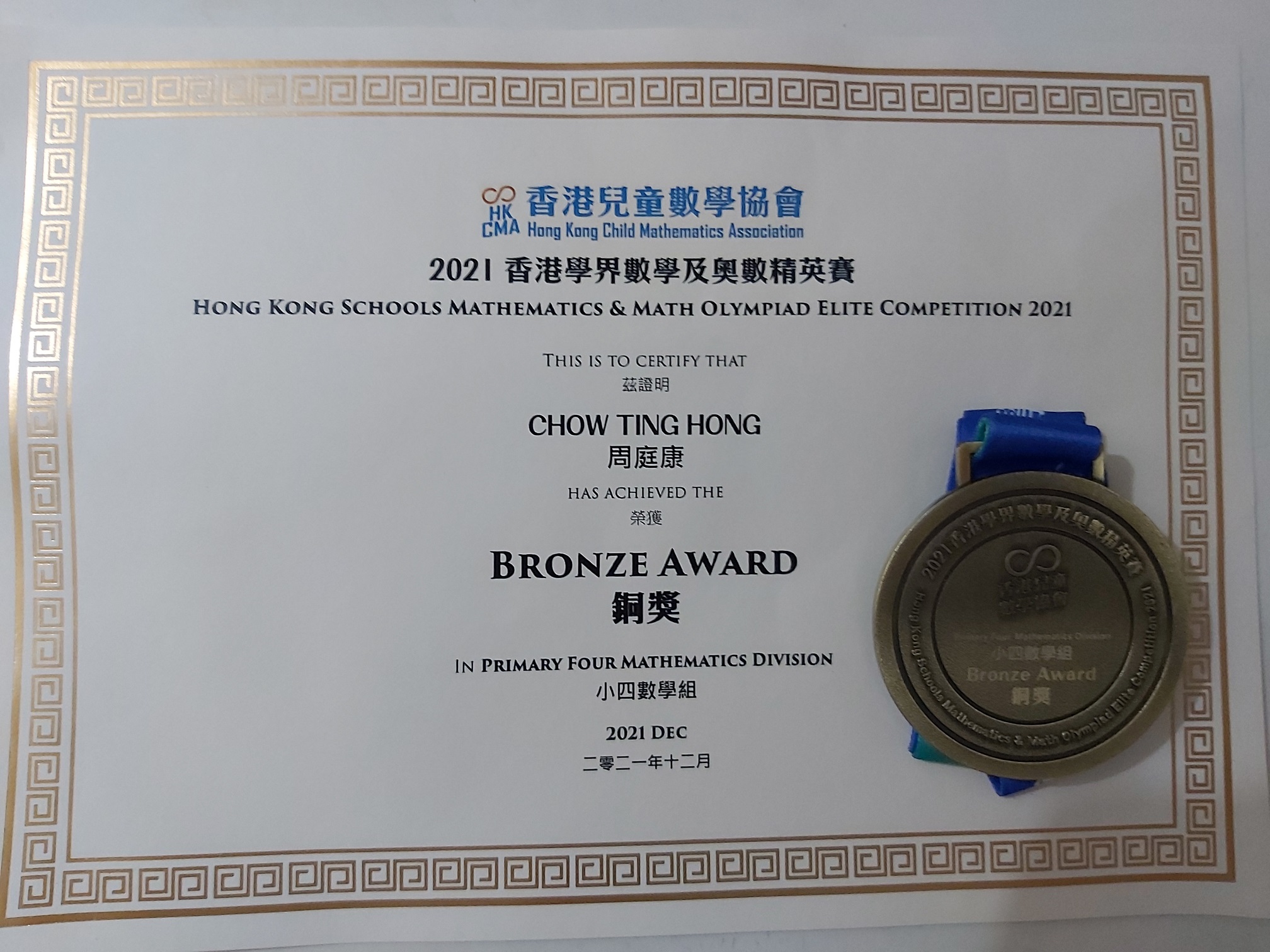 4B_周庭康_2021香港學界數學及奥數精英賽_小四數學組_銅獎