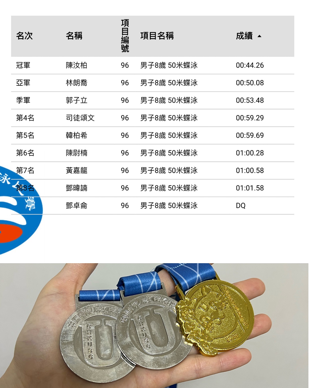 3B_林朗喬_迎虎年游泳比賽 (2022)_ 男子8歲50米蝶泳_亞軍