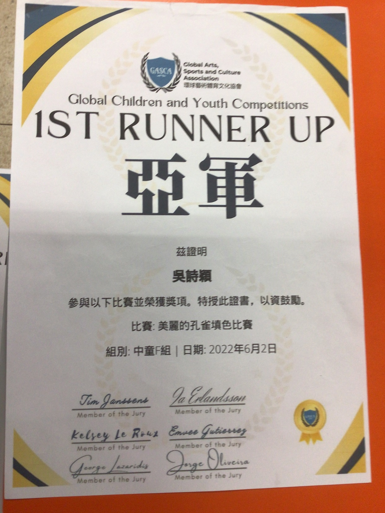 5A_吳詩穎_美麗的孔雀填色比賽_中童F組_亞軍