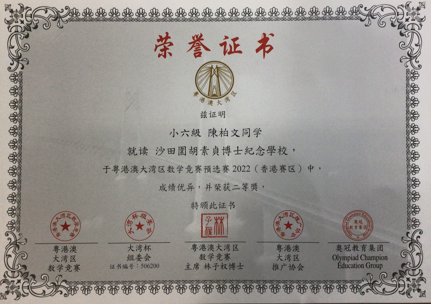 6D_陳柏文_粵港澳大灣區數學競賽預選賽_ 小六級_ 二等獎