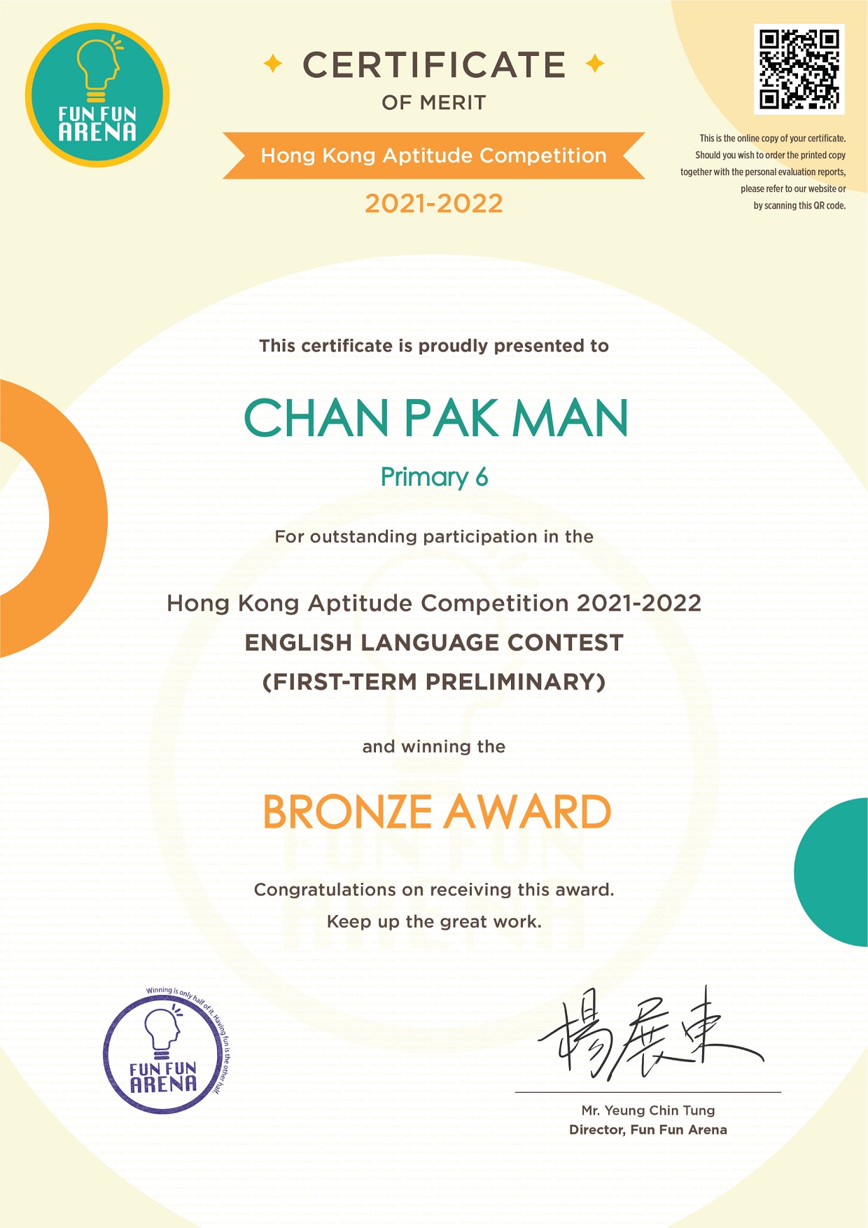 6D_陳柏文_香港學科比賽2021-2022 (上學期英文初賽)_ 小六級_銅獎