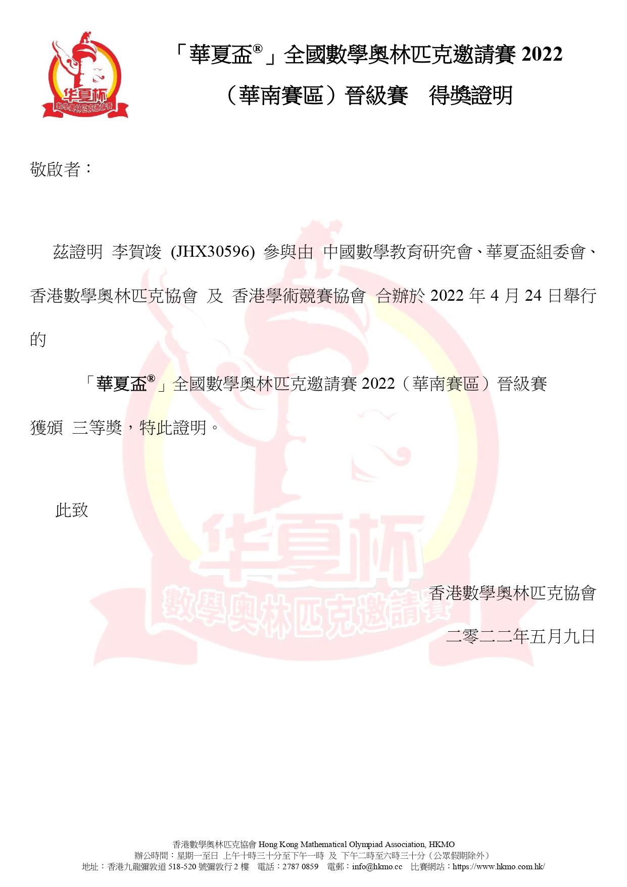 5B_李賀竣_華夏盃全國數學奧林匹克邀請賽2022_華南賽區晉級賽_三等獎