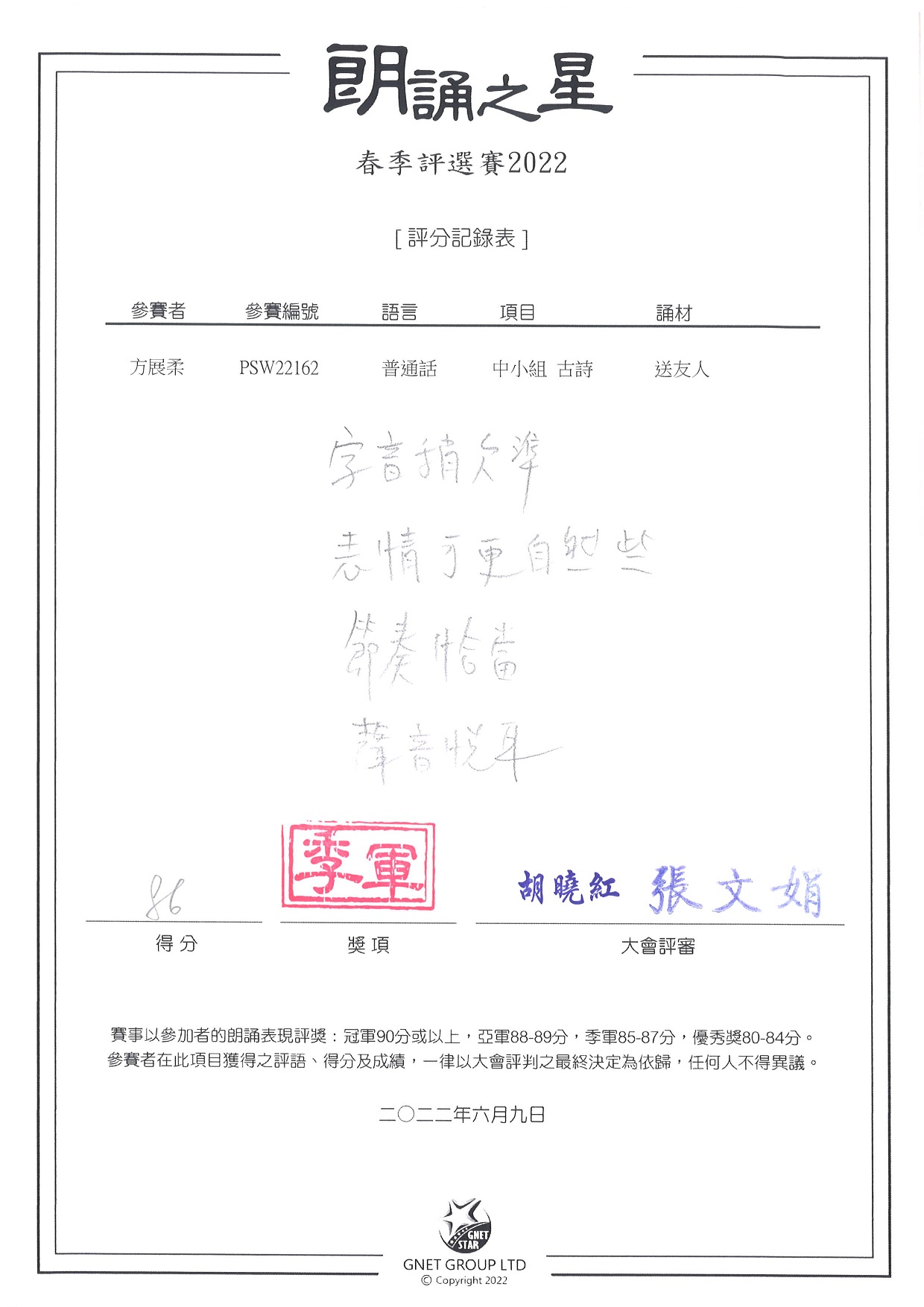 4C_方展柔_朗誦之星春季評選賽_中小組_季軍