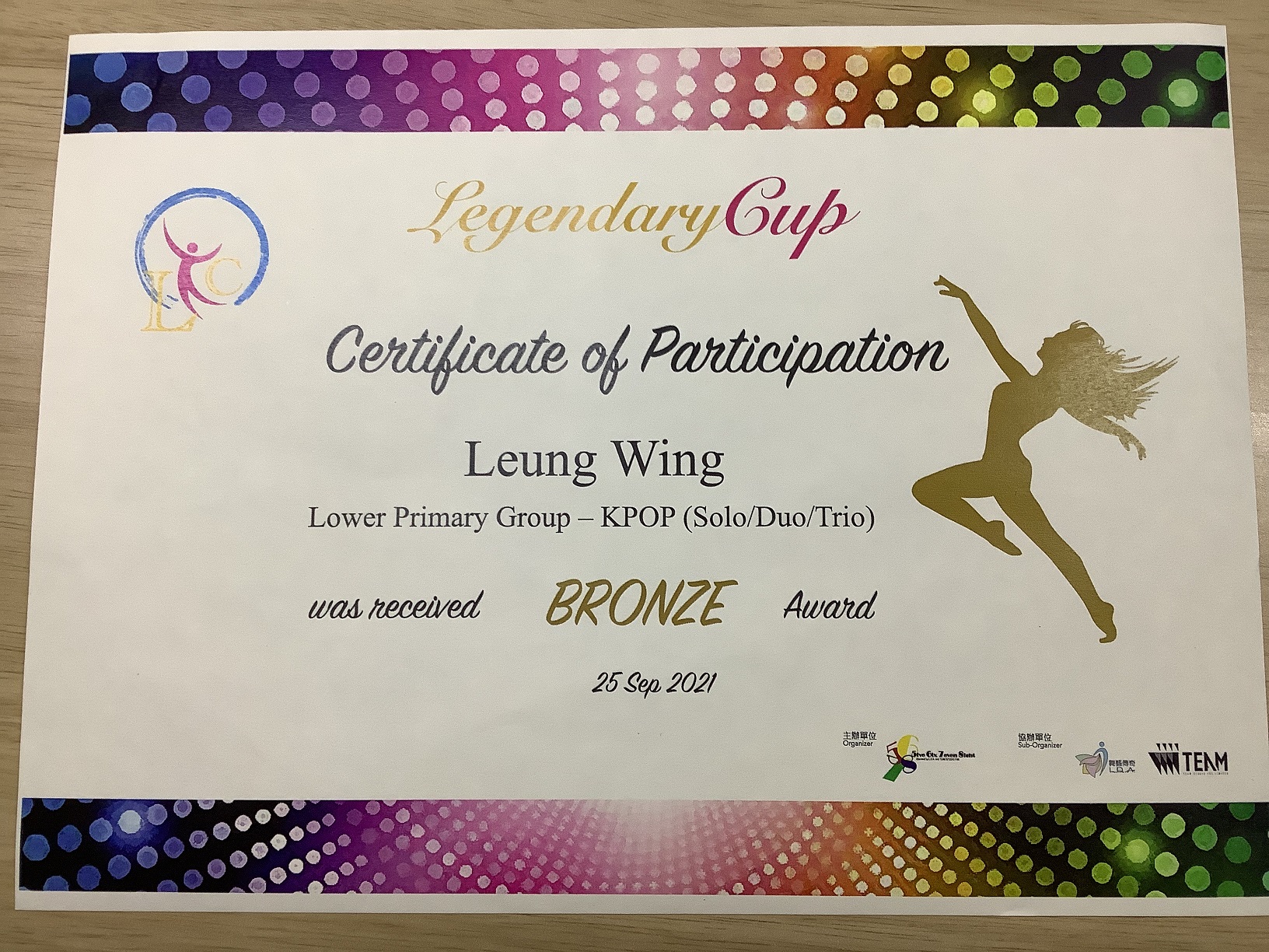 2D_梁穎_Legendary Cup_ Kpop 韓國流行音樂_ 小學低年級的單項_銅獎