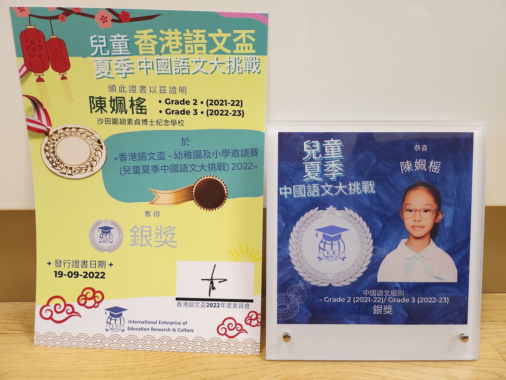 3B_陳姵榣_香港語文盃~夏季中國語文大挑戰_3年級_銀獎