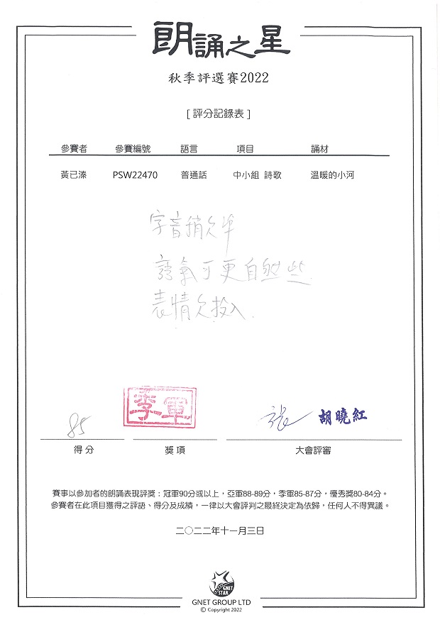 3A_黃已溱_朗誦之星秋季評選賽_中小組詩歌_季軍
