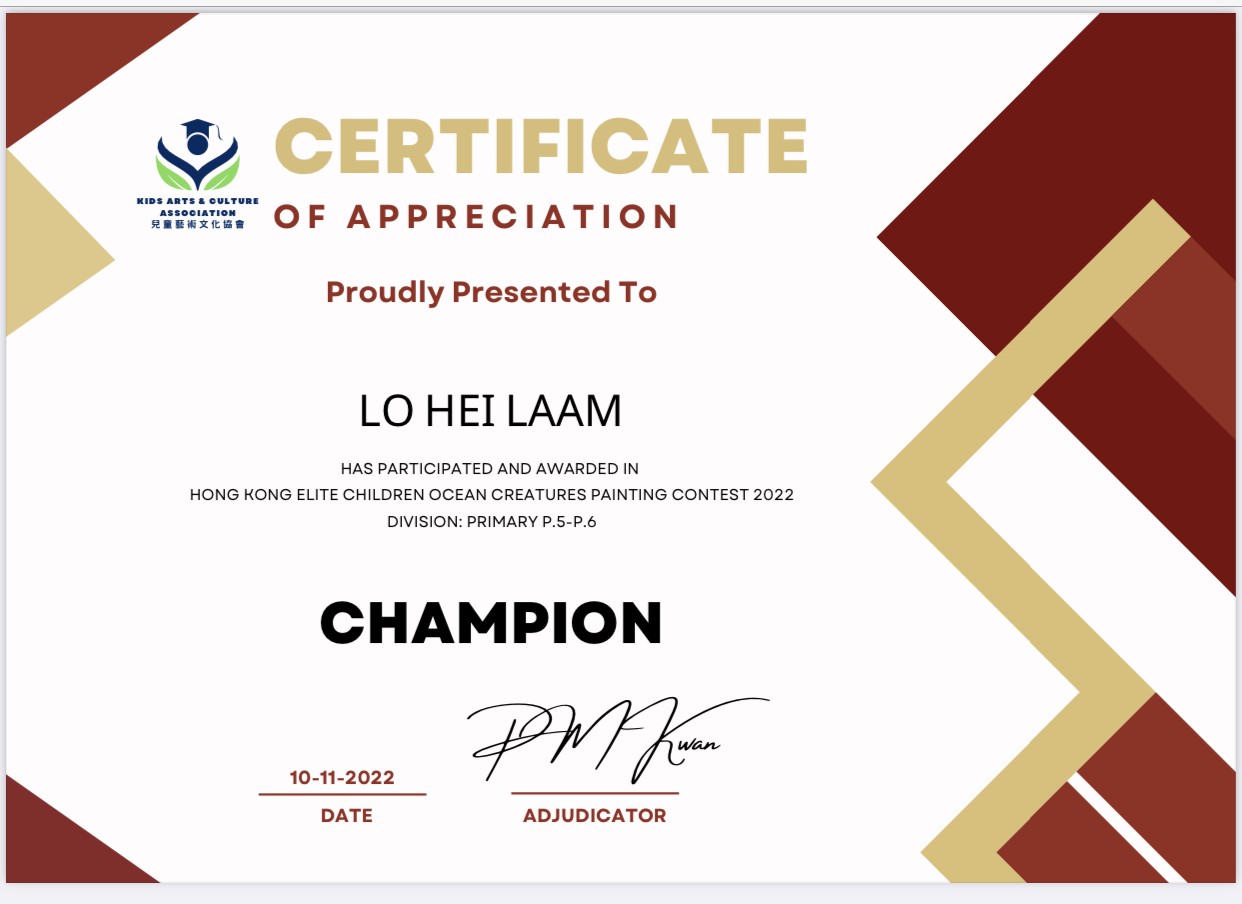 6C_盧希嵐_2022 海洋動物填色/繪畫及手工勞作比賽_ 小五及小六_冠軍