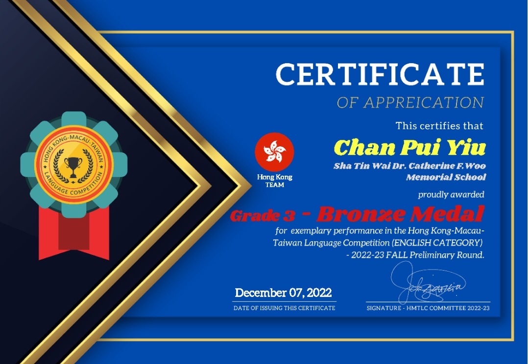 3B_陳姵榣_(2022-23)年港澳台語文競賽(英文組)初賽_P3組_銅獎
