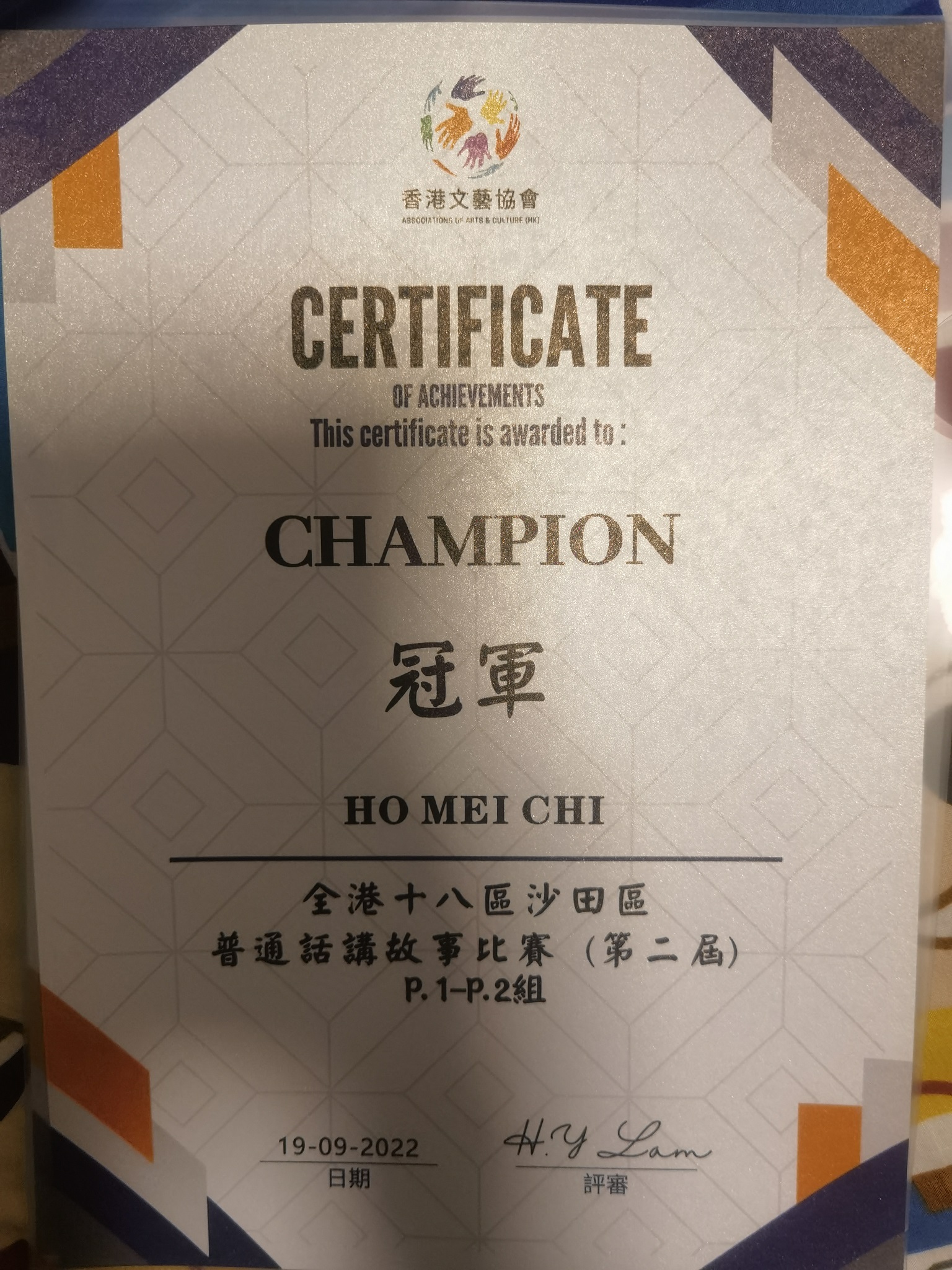 2A_何美姿_全港十八區沙田區普通話講故事比賽(第二屆)_P.1-P.2組_冠軍