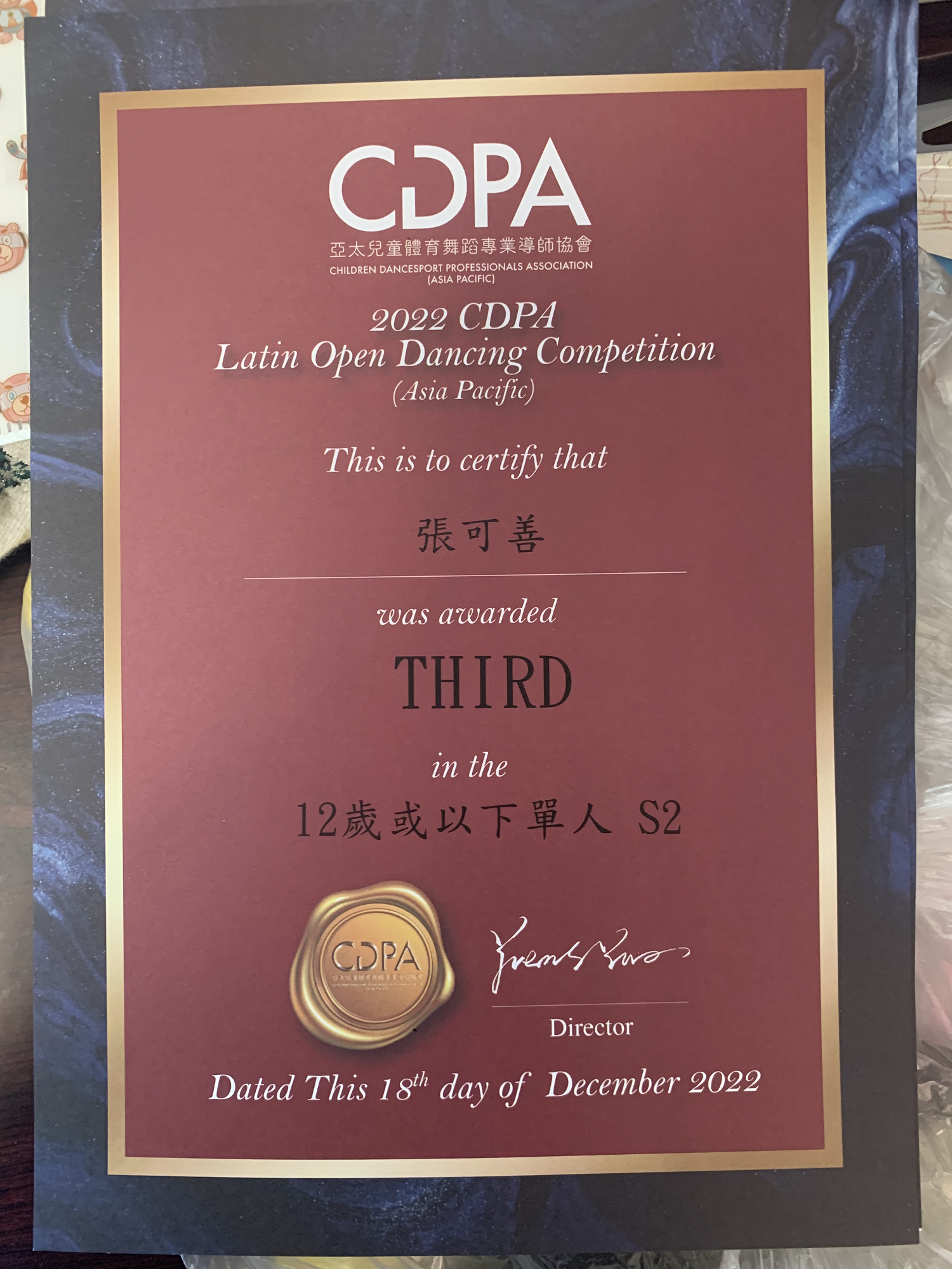 5C_張可善_12歲以下單人森巴舞比賽_10-12歲組別_季軍