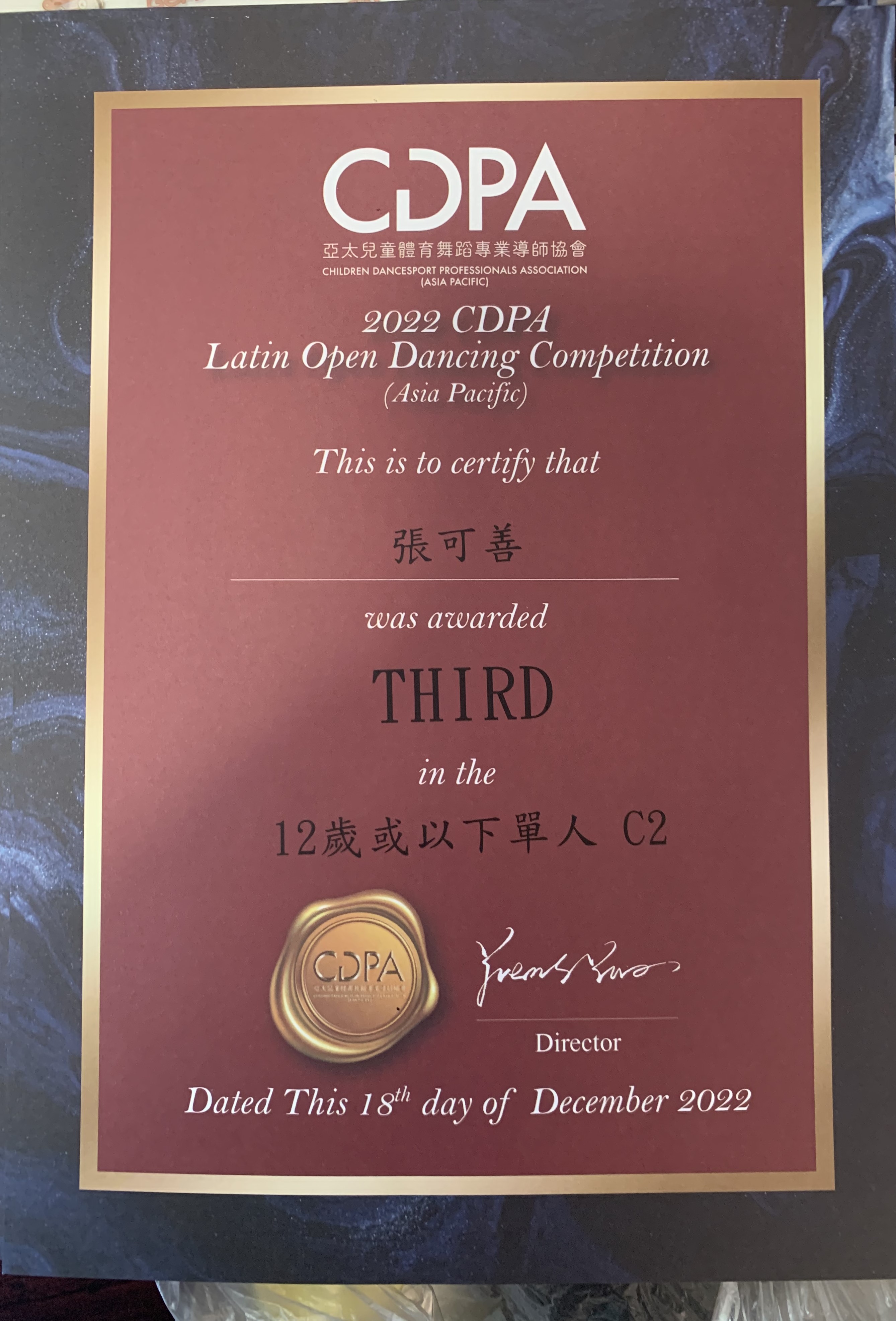 亞太兒童體育舞蹈專業導師協會 | 5C_張可善 |