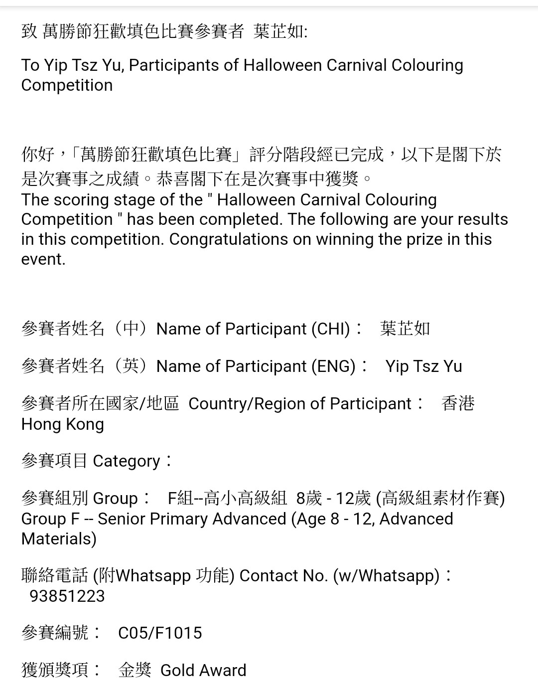 6B_葉芷如_萬聖節狂歡填色比賽_高小高級組_金獎