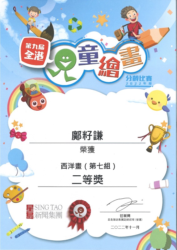 5B_鄺籽謙_第九屆全港兒童繪畫分齡比賽_西洋畫(第七組)_二等奬