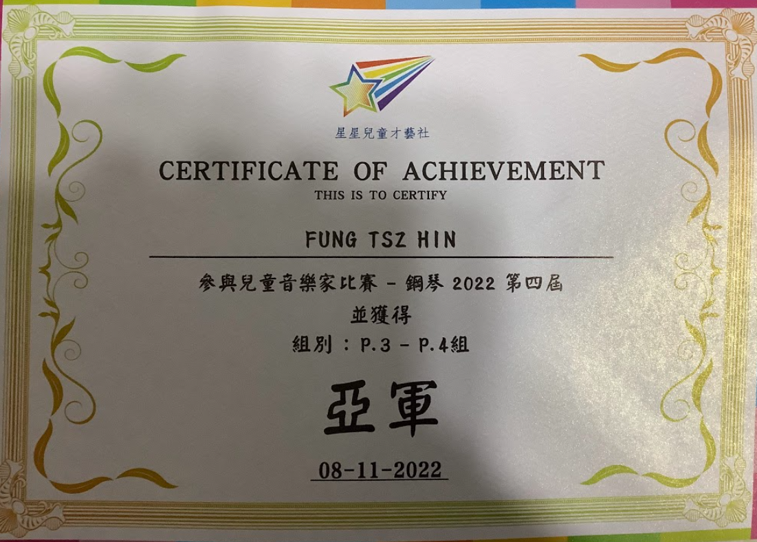 3A_馮子騫_兒童音樂家比賽 鋼琴2022 第四屆_p.3-p.4組_亞軍