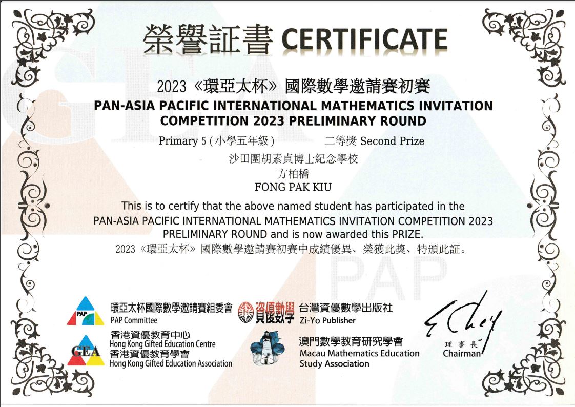 5B_方柏橋_2023《環亞太杯》國際數學邀請賽初賽_小學五年級_二等獎