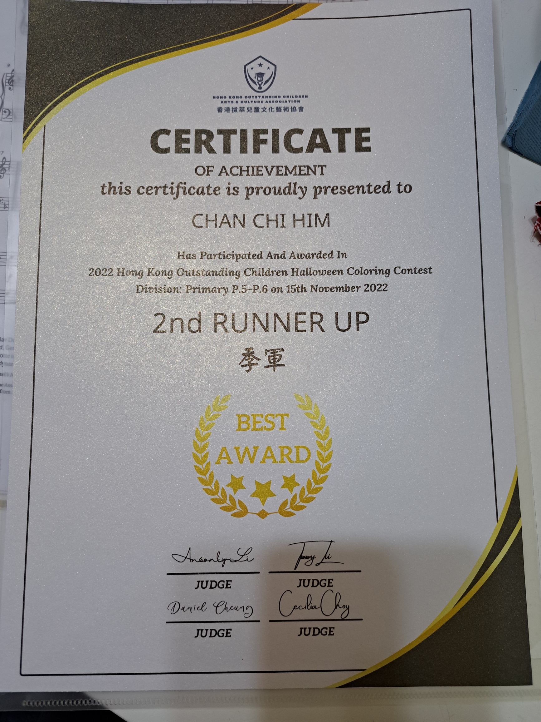 5A_陳梓謙_香港拔萃兒童萬聖節填色比賽_五年級組別_季軍