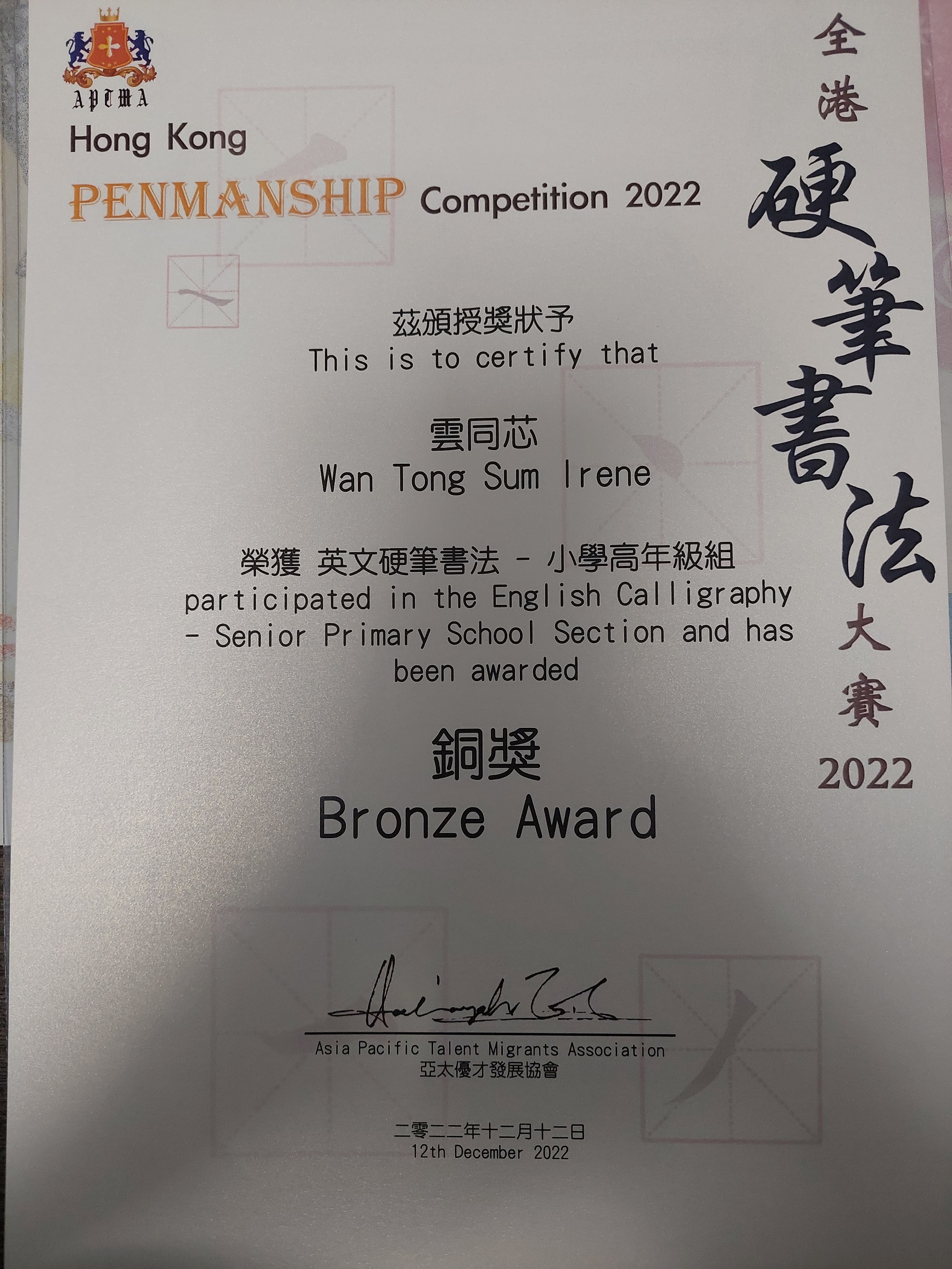 5C_雲同芯_全港硬筆書法大賽2022_小學高年級組_銅獎