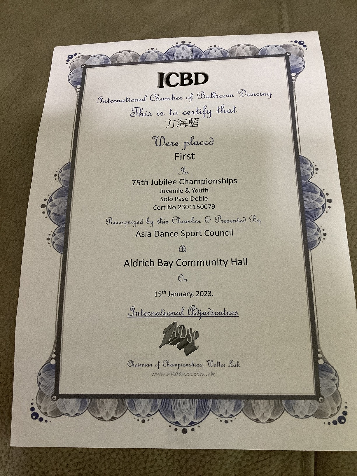 2A_方海藍_女王冠軍盃大奬賽2023_8歲或以下單人Paso Doble_冠軍