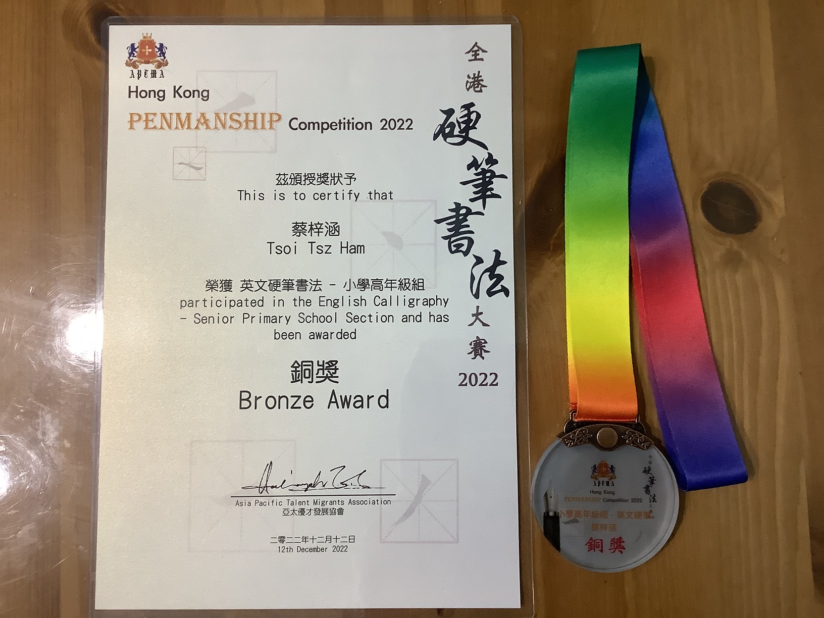 4D_蔡梓涵_全港硬筆書法大賽(英文)2022_小學高年級組_銅獎