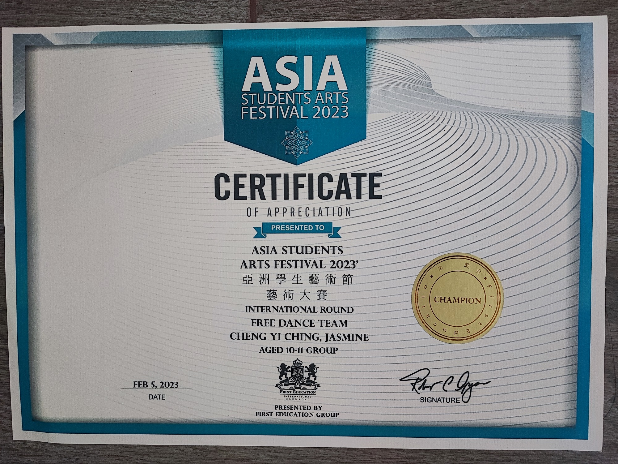 4B_鄭懿晴_亞洲學生藝術節藝術大賽_10-11歲_冠軍