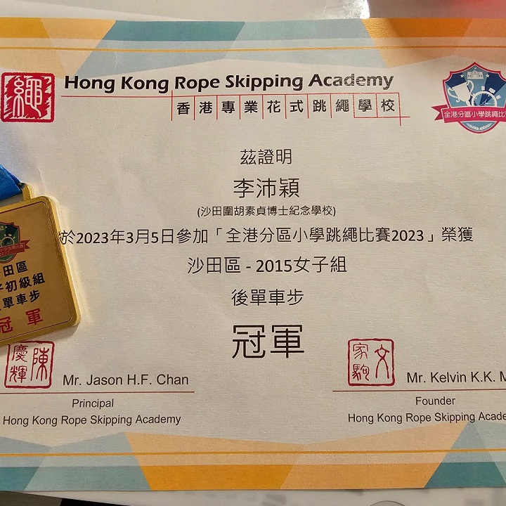 2B_李沛穎_全港分區小學跳繩比賽2023沙田區2015年_女子組後單車步_冠軍