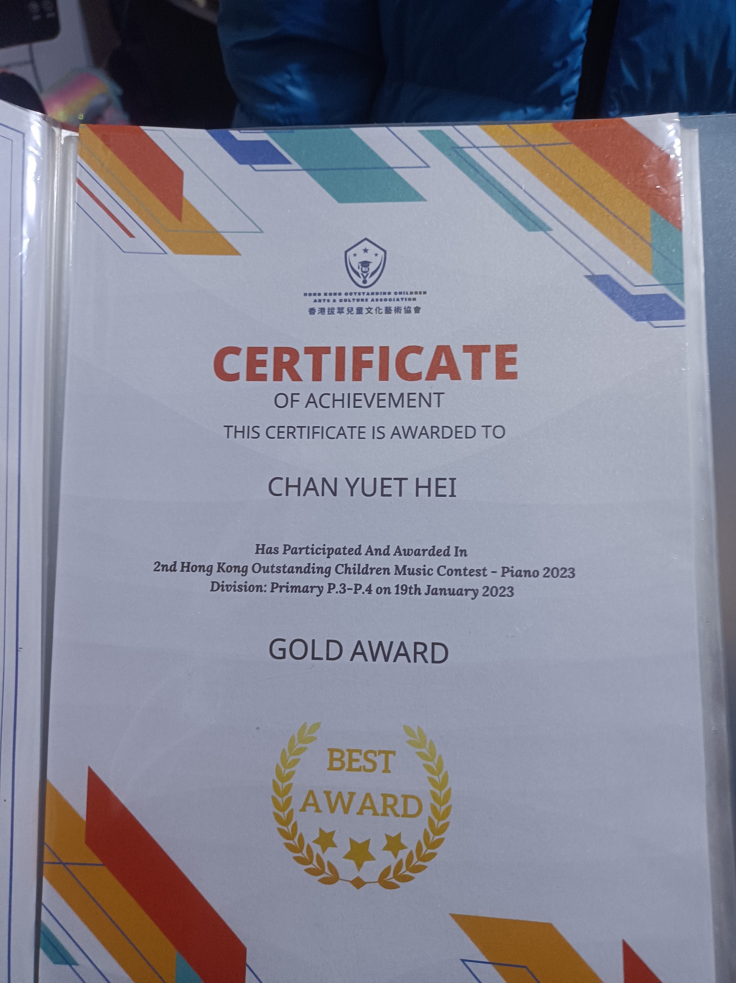 3B_陳悅曦_香港傑出兒童音樂比賽_P3-P4鋼琴_金獎