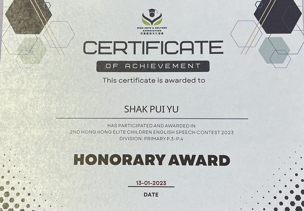 4A_石沛榆_第二屆全港精英兒童朗誦比賽_英語朗誦 - 小學三至四年級組_榮譽奬
