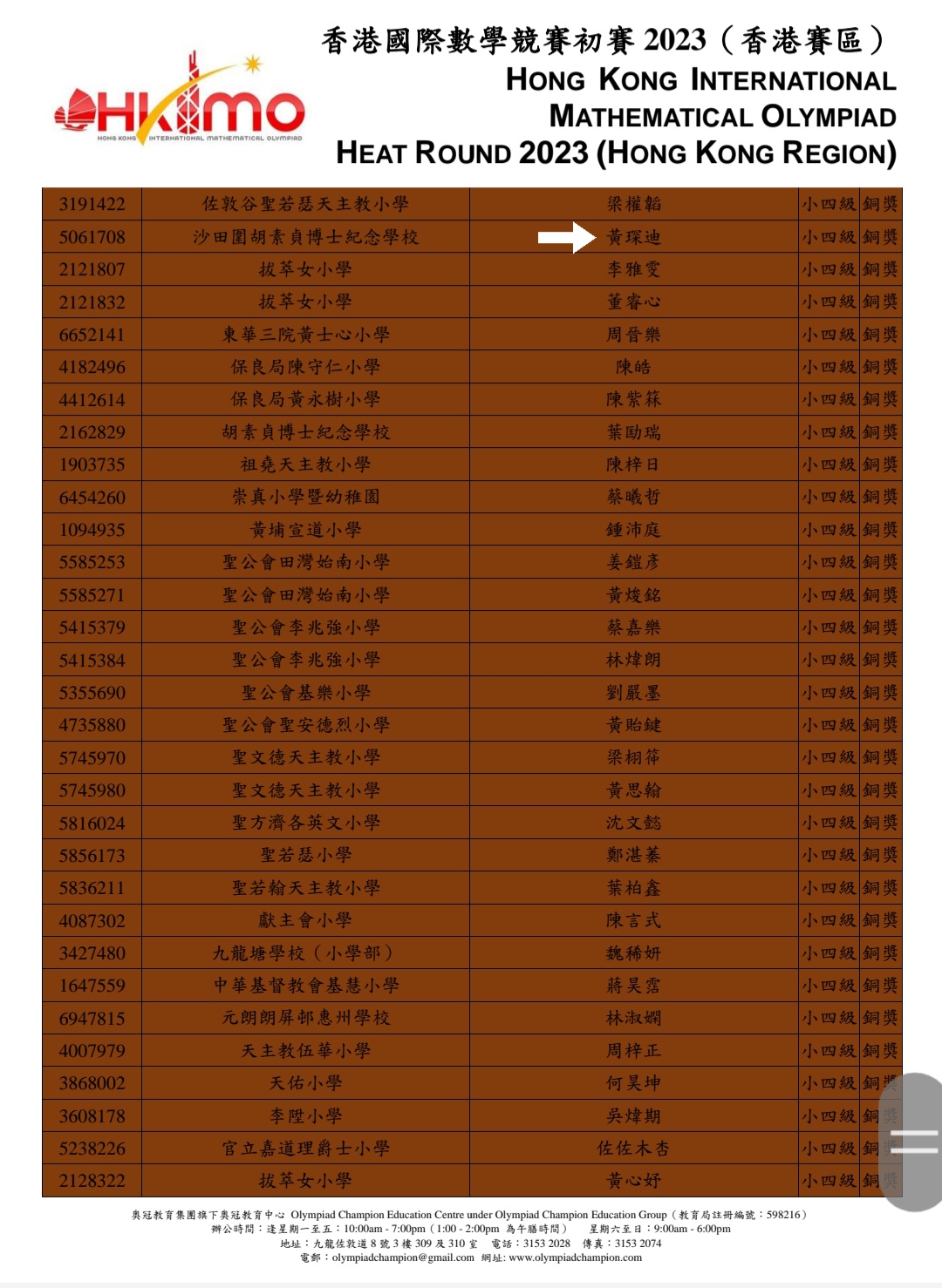 4A_黃琛迪_香港國際數學競賽初賽2023(香港賽區)_小學四年級_銅獎